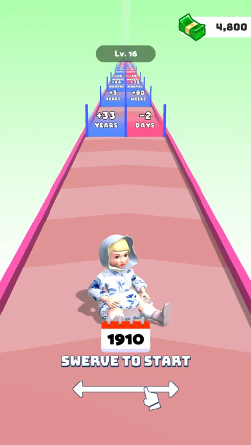 It's time to discover various toys from 1900s to today. Quite simple to play: Try to upgrade your toy by passing through the year gates, but watch out the negative ones because they can downgrade your toys!