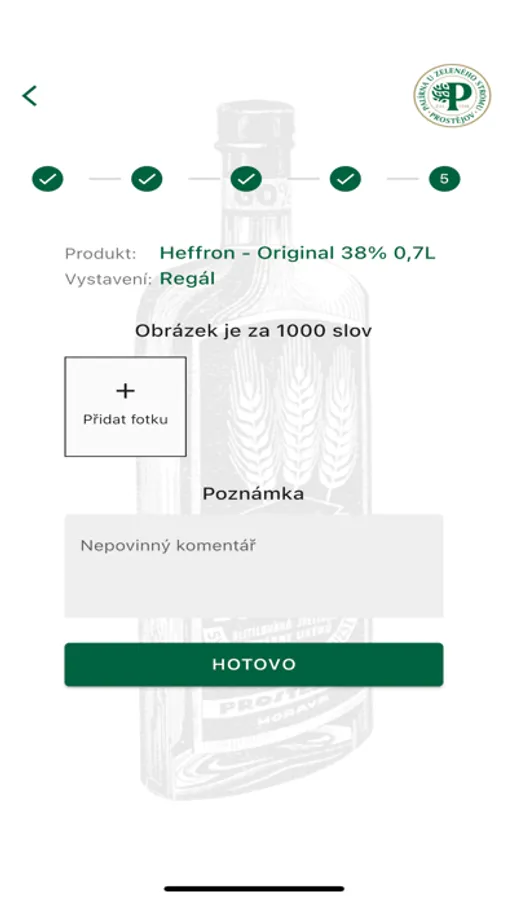 Aplikace slouží pro sběr dat o produktech naší palírny a způsobu jejich vystavení v obchodech."