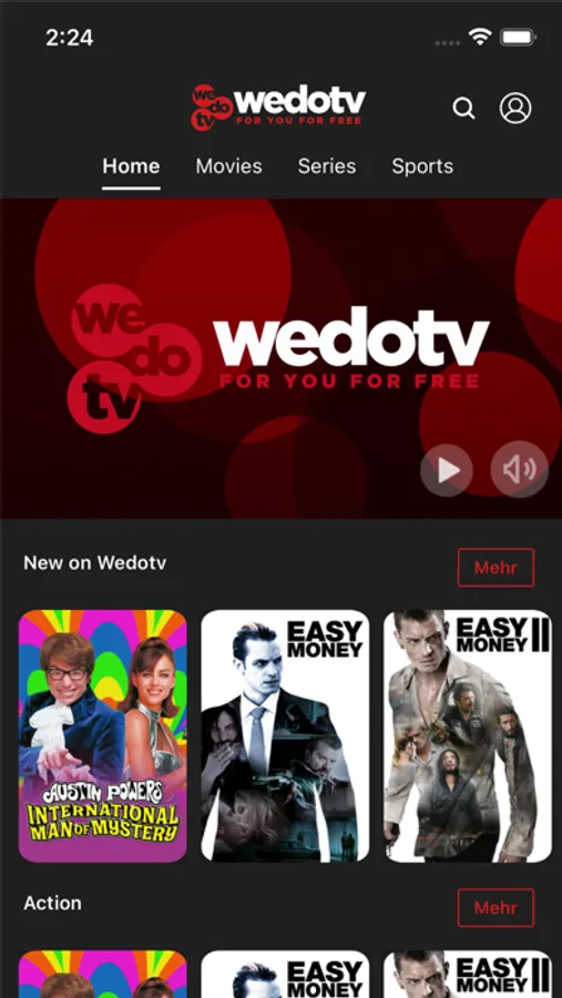 wedotv is video on demand service (VOD) where you can stream movies, series, live TV and live sport events right on your Apple device. In addition to a variety of TV shows and movies, wedotv app also offers exciting documentaries, sports shows, and videos from the lifestyle, comedy, and automotive sectors.
