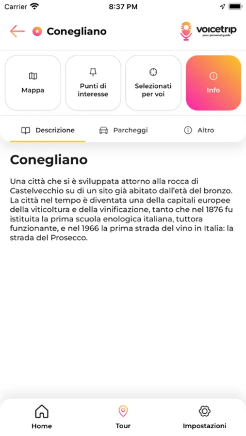 VoiceTrip is the innovative app that allows you to better organize your tours with information on locations and points of interest and with dozens of audio guides to listen to.