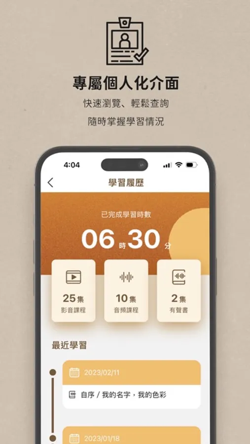 透過學習履歷系統,真實呈現學習軌跡,課程章節、閱聽進度不錯過,建構高效學習力!