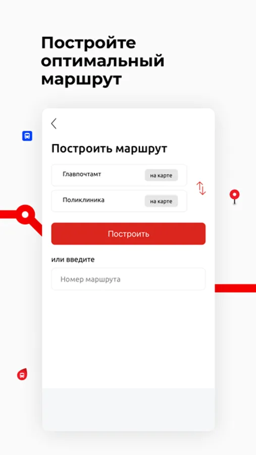 - построить свой маршрут с учетом пересадок на общественном транспорте;