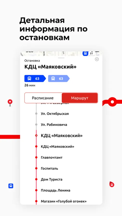 - узнать расписание и прогноз прибытия на нужную остановку;