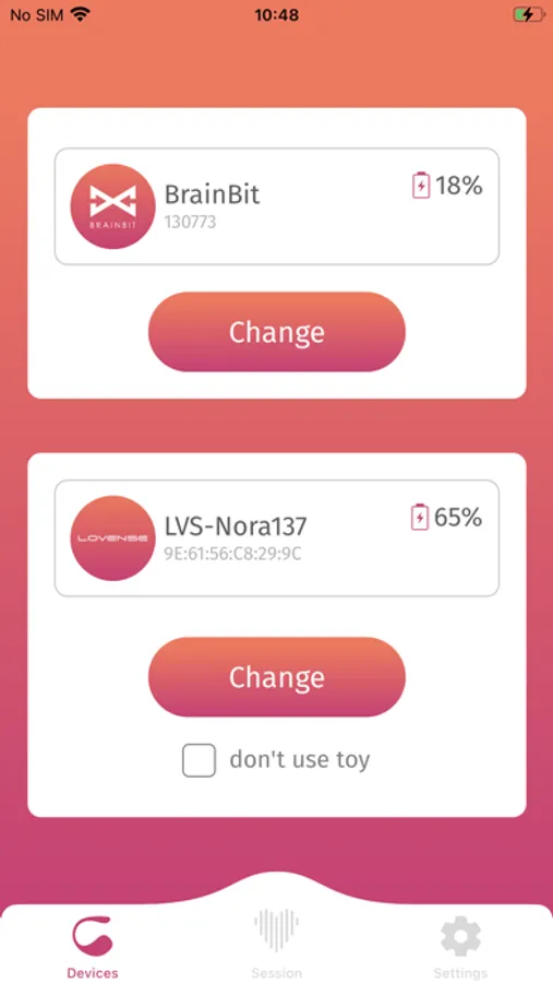 The "BrainBit Love" application is intended to conduct sessions during which the emotional state of the user (the degree of relaxation or attention concentration) is determined using the "BrainBit" device. The registered data is used to control the switching of operating modes of the «Lovense» device. Devices "Lovense" and "BrainBit" are purchased separately.