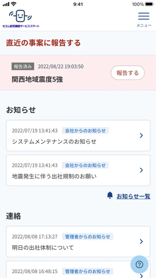 This application is exclusively for the safety confirmation service for SMEs (SECOM Safety Confirmation Service Smart Edition) provided by SECOM Trust Systems Co., Ltd.