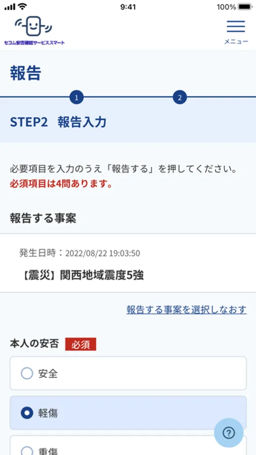 Users can report their safety status when they are subject to safety confirmation due to disasters.