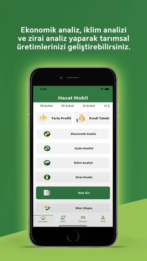 Hasat Mobil ile tarlanızı, ürünlerinizin gelişimini uydu görüntüleri ile anlık takip edebilir, kredi başvurunuzu yapabilirsiniz. Şekerbank kredi kampanyaları ve tarımsal girdi alımına yönelik Hasat Kart kampanyaları ile ilgili herkesten önce bilgi sahibi olur, uygulama kullanıcılarına özel ayrıcalıklardan yararlanabilirsiniz. Hasat Mobil, Şekerbank müşterisi olsun ya da olmasın herkes için ücretsiz olup üreticilere, tarlalarını uydudan takip etme, tarlalarında herhangi bir sulama , …vb. sorun olan alanı uygulamadan tespit etme ve uygulama ile sorunlu alana ulaşma gibi tarımsal üretime yönelik bilgilendirme ve takip imkanları ile Şekerbank’tan kredi talebinde bulunma, güncel kampanyaları takip etme gibi bankacılık hizmetlerine hızlı erişim imkanı sunan bir tarım uygulamasıdır. Hasat Mobili kullanmak için tarımsal üretim yaptığınız tarlanızı, bahçenizi,…vb. uygulamaya kaydetmeniz yeterlidir. Uygulamada kaydettiğiniz tarlanızdaki ürününüzün hal/borsa fiyatlarını takip edebilir, bitki sağlığını izleyebilir, tarlanızda sulamanın aksadığı, yabani hayvanların zarar verdiği alanları uygulama üzerinden “kırmızı” olarak görürsünüz. Uygulamanın navigasyon özelliği ile bu alana kolayca ulaşırsınız. Ayrıca iklim geçmiş dönem iklim verilerini inceleyebilir, güncel iklim haberleri ile ilgili bildirimler alabilirsiniz. Zirai Analiz ile yağış birikimi, terleme-buharlaşma birikimi, hastalık riski, sıcaklık birikimi, don adeti, yanma adeti, toprak tekstürü ve ph bilgilerine erişebilirsiniz. Tarımsal üretim için yaptığınız faaliyetleri not alarak üretim geçmişinizi oluşturabilirsiniz. Uygulamayı kullandıkça sistemde dijital çiftçi skorunuz birikir ve bu skora göre Şekerbank’ın sağladığı avantajlardan yararlanabilirsiniz.