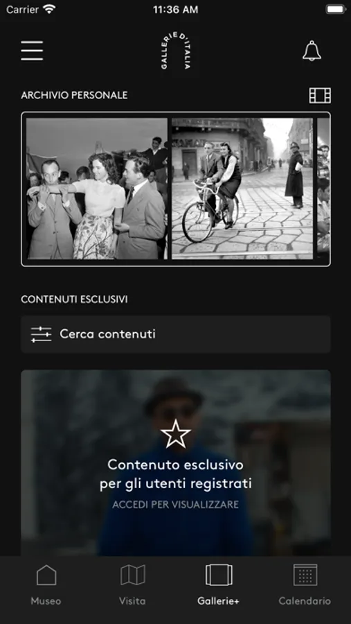 Gallerie+ - repository of extra contents and images saved by the user thanks to the interaction with "Archivio Vivo"
