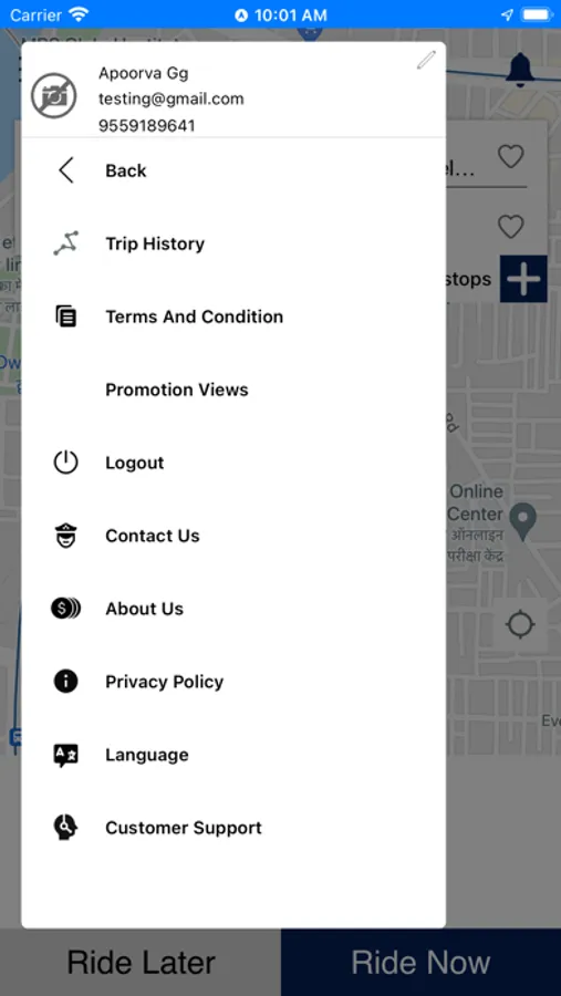 2. The app will list all nearby service drivers based on popularity or proximity,