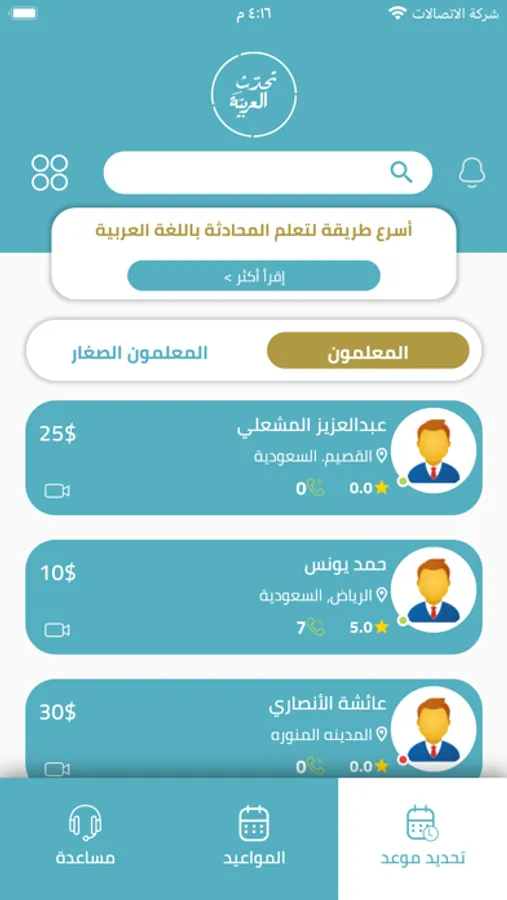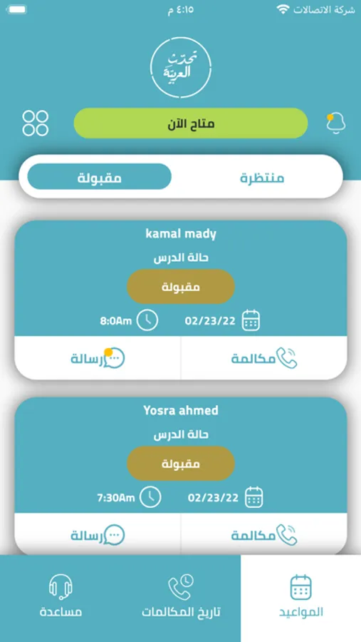 نحن نقدم مكالمات مباشرة بينك وبين مدرس اللغة العربية الخاص بك حتى تتمكن من التدرب والتحدث بطريقة مباشرة لتحسين مهارات المحادثة في اللغة العربية.