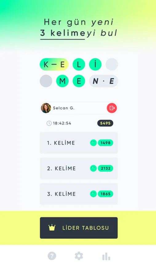 Her gün güncellenen üç kelimeyi en fazla altı tahminde ve en kısa sürede bul, lider tablosunda kendini göster. Bugün olmazsa yarın, yarın olmazsa haftaya bir gün. Bir gün o tablonun en tepesine çıkılacak. Önemli olan vazgeçmemek.