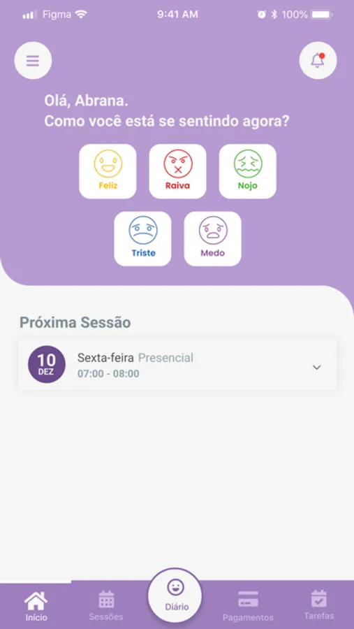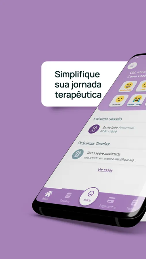 Mantenha uma interação próxima com seu psicólogo. Compartilhe suas experiências com o recurso Diário de Emoções, o qual permite expressar seus sentimentos e insights, enriquecendo o processo de terapia.