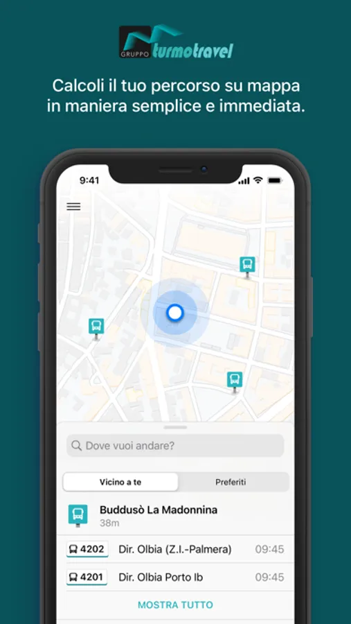 - Visualizzi le fermate vicino a te o a un altro indirizzo di tuo interesse;