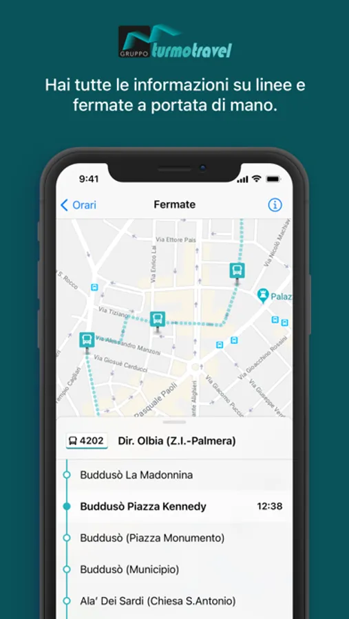 - Visualizzi su mappa il percorso delle linee e le fermate;