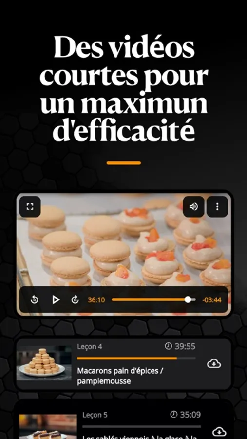 Nos leçons durent en moyenne une quinzaine de minutes. Un temps optimal pour apprendre sans se lasser et profiter de chaque moment disponible pour progresser. Suivez chaque masterclass comme vous le voulez : leçon par leçon... ou tout d'un coup !
