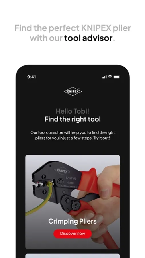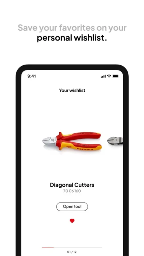With the KNIPEX app you can always find the right pliers for you. Get access to the entire KNIPEX range, find out about our products and save your favorites on your personal wish list.a