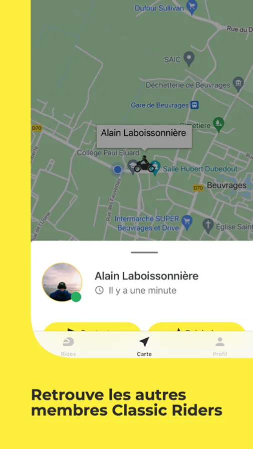 Classic Riders te permet de trouver les membres de la communauté proche de toi et de facilement les rejoindre.