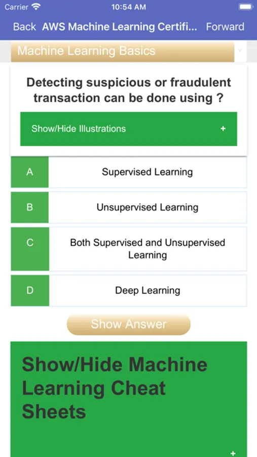 Use this App to learn about Machine Learning on AWS and prepare for the AWS Machine Learning Specialty Certification MLS-C01.