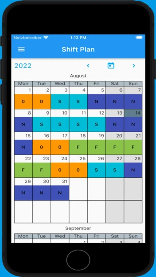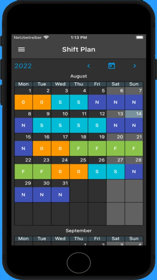 Über den Schichtrhytmus kann man seine Schicht eintragen und es wird über die Jahre verteilt als Kalender angezeigt.