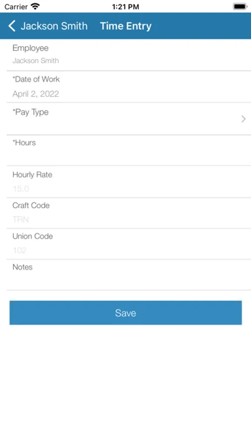b. Ability to record time for a foreman's entire crew in one single screen.