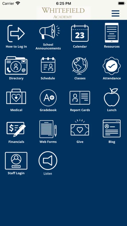 Welcome to the Family App for families of Whitefield Academy in Kansas City, MO! This app is a one-stop-shop for our school community, with anytime, anywhere access to all the tools, content, and communications parents need to stay connected and engaged. School information available in one easy to access place includes Announcements, School Calendar, Student Grades and Homework, Family Accounting, Giving Options, and much more!
