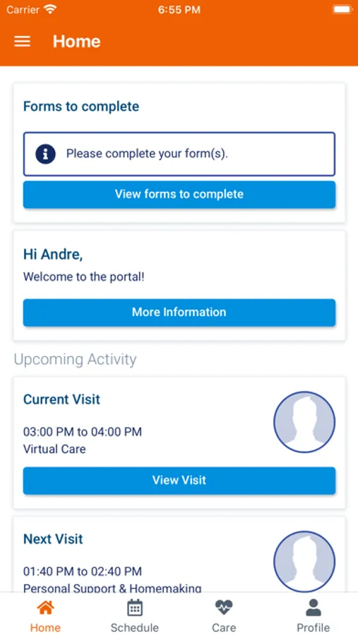 - View upcoming and previous visits