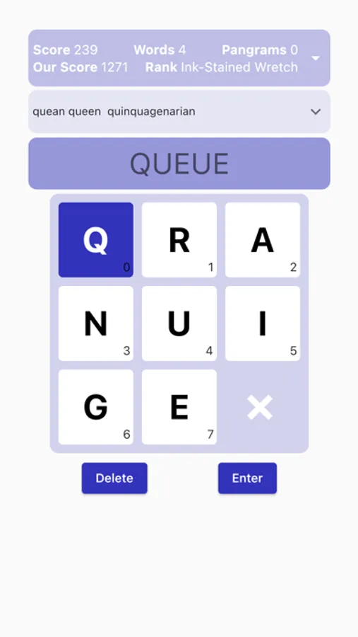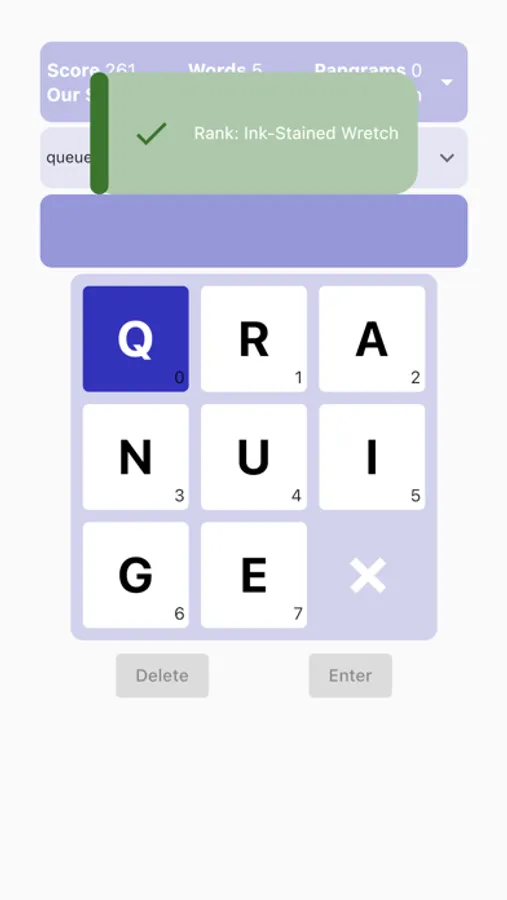 Find the pangram and earn ranks like Master Wordsmith or Grand Lexicographer. It's the perfect puzzling pastime for Spelling Bee fans.