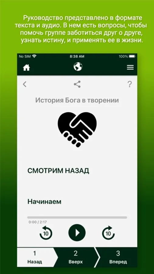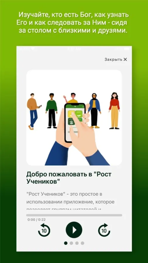 С нашим приложением, ваша группа будет узнавать и применять достоверные, простые и воспроизводимые образцы жизни учеников Иисуса. Для каждой встречи вам поможет руководство с текстом или аудио, которое включает в себя стихи из Библии. Когда вы будете заботиться друг о друге, изучать божьи принципы, применять в жизнь то, что вы изучаете, а также испытывать божье присутствие и делитесь всем этим с другими, вы начнете помогать другим людям объединяться в свои группы и духовно расти вместе в своих домах.
