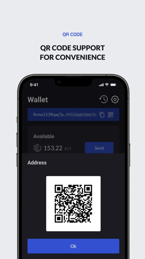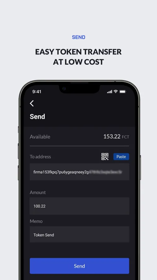 - Supports QR code and Paste feature that allows users to easily enter their wallet address