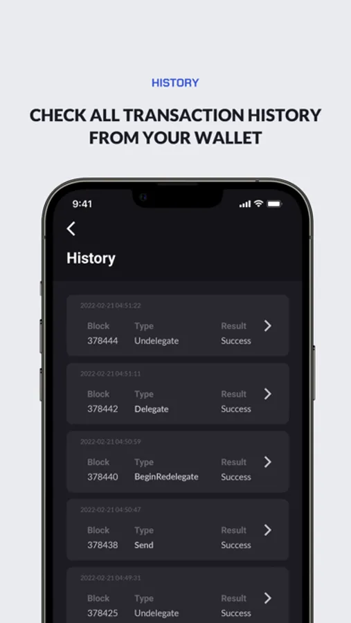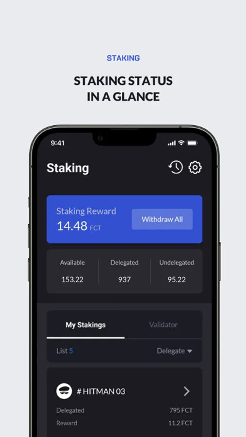 - Supports all staking features (Delegation, Redelegation, Undelegation)