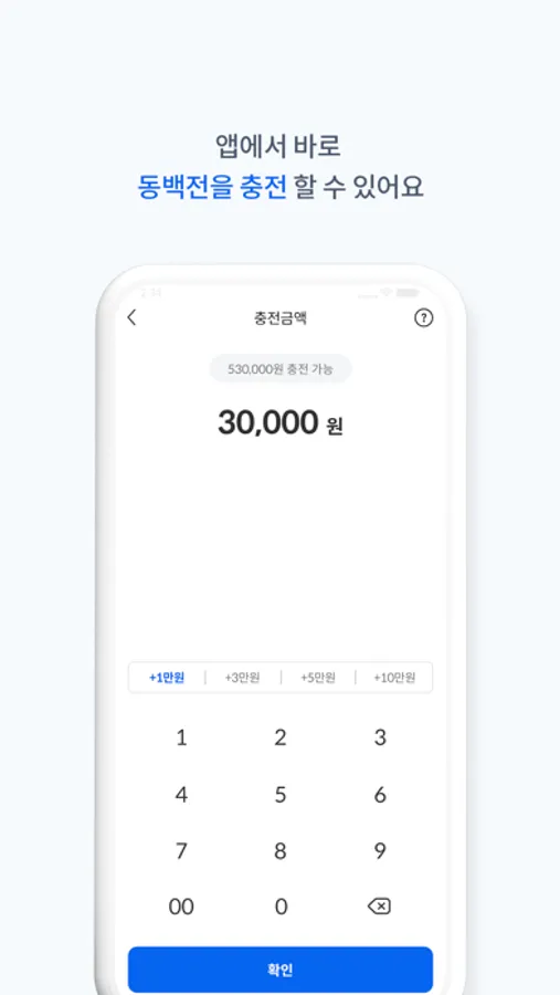 - 모바일앱에서 간편하게 금액 충전이 가능하며, 동백전 잔액과 이용내역도 확인하실 수 있습니다.