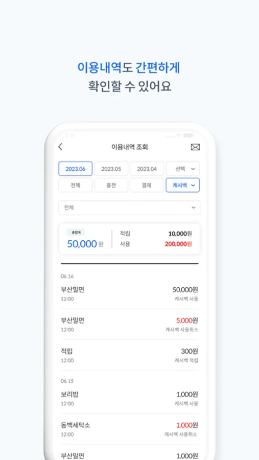- 캐시백은 결제 시 현금처럼 쓸 수 있습니다.