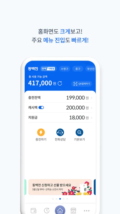 * 동백전은 부산시 내 등록된 모든 카드 또는 QR가맹점에서 사용할 수 있습니다.