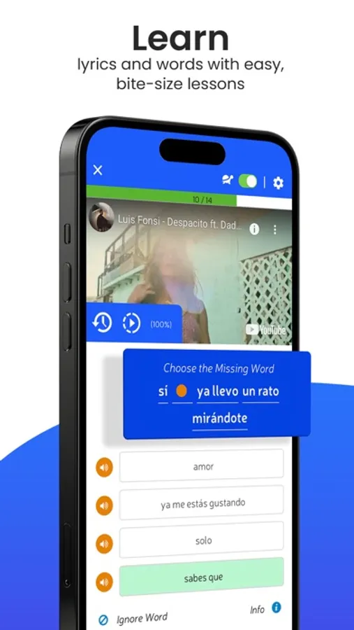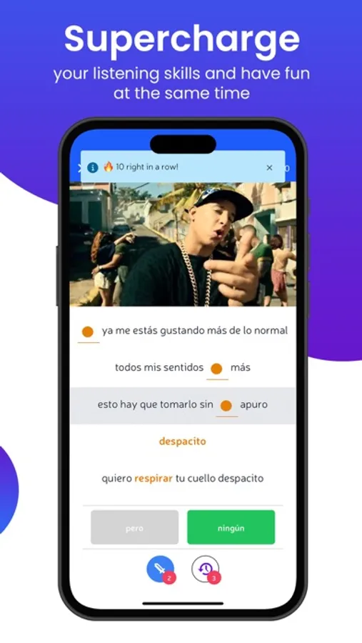 Supercharge your listening skills in as little as five minutes a day. Learn words and phrases in context through hit song lyrics. Play fun games. Beat multiple study modes. Review what you studied with spaced repetition.