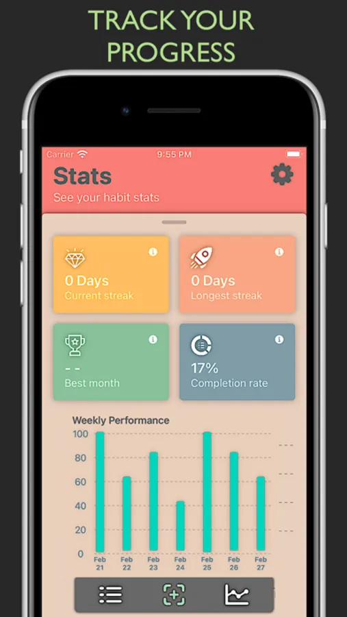 Stats - Track your achievements, streaks, completion rates and visually track your progress with beautiful charts.