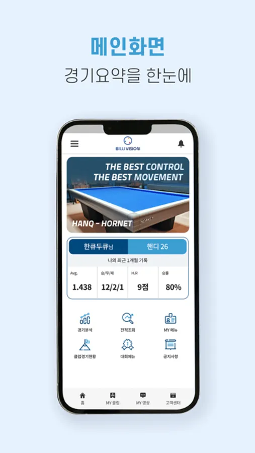 빌리비전 머신비전 스코어보드가 설치된 당구장에서 경기를 하는 회원들을 위한 앱 입니다.