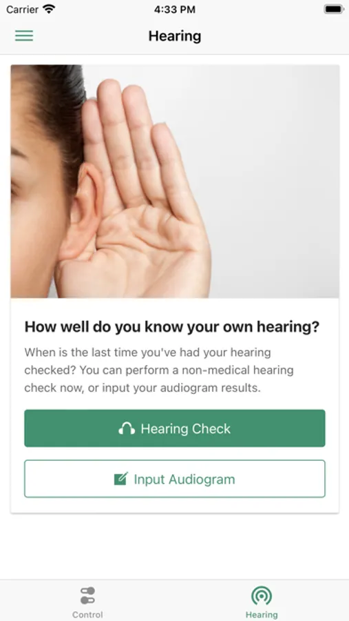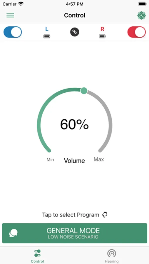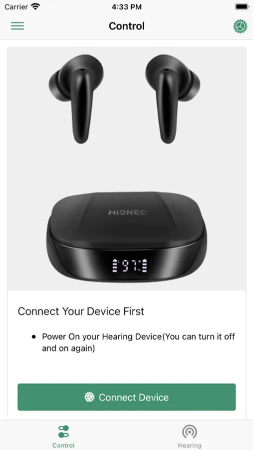 The Hionec Fit app provides control of your Hionec Fit devices, letting you adjust the volume of your devices independently, switch between listening programs, keep an eye on your battery level and take a quick non-medical hearing check. And also, the app enables you to create your hearing perference of your devices according to your result.