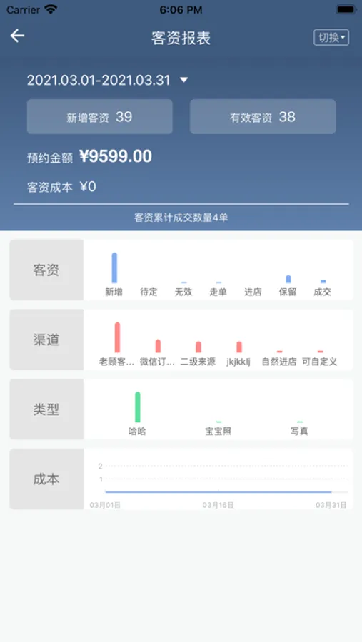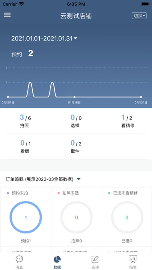 影楼全掌控是菜瓜云旗下通用影楼ERP管理系统的老板端APP,帮助影楼老板实现影楼移动全掌控,所有数据随身携带,影楼管理难度降低,提供各种维度的数据展示,通过全掌控APP,影楼老板及管理者可查看影楼此时此刻的订单量、客资量、成交情况、跟进情况、满意度等超过20项的实时数据指标,随时随地掌控影楼全盘运作数据以及员工工作情况,以便更好地运筹帷幄,及时发现问题,解决问题。