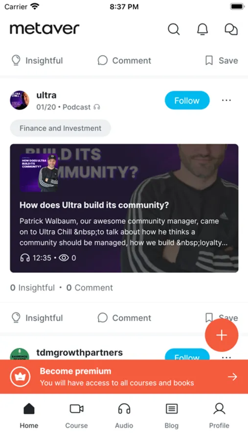 With Metaver, you can not only learn, but you can join a community of like minded learners as well. On the homepage, enjoy a news feed of posts from other Metaver users sharing their latest lessons and insights from whatever courses they’re taking or podcasts or audiobooks they’re listening to. You can also connect to your other social media accounts such as Instagram and Facebook in order to sync with friends you already know who are also using Metaver or take your Metaver learning to the other corners of social media. Want to engage in deeper discussions with other users? Simply send a DM or start a chat room about a topic, author, lesson, etc.