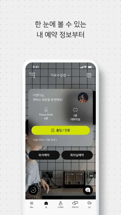 CANVAS App으로 스마트워크센터 예약후 이용해 보세요.