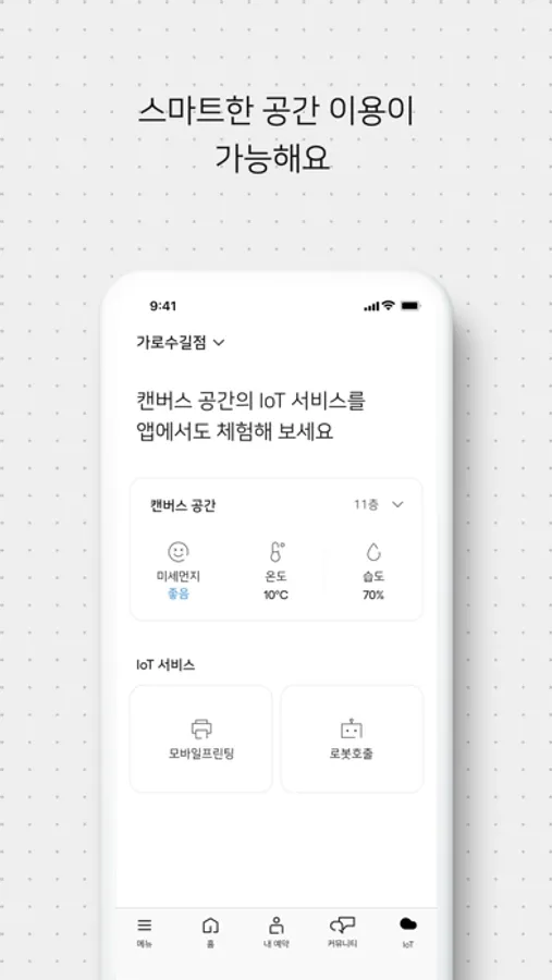 CANVAS App에서는 IoT, 로봇 등 최신 기술을 적용한 다양한 경험을 제공합니다.
