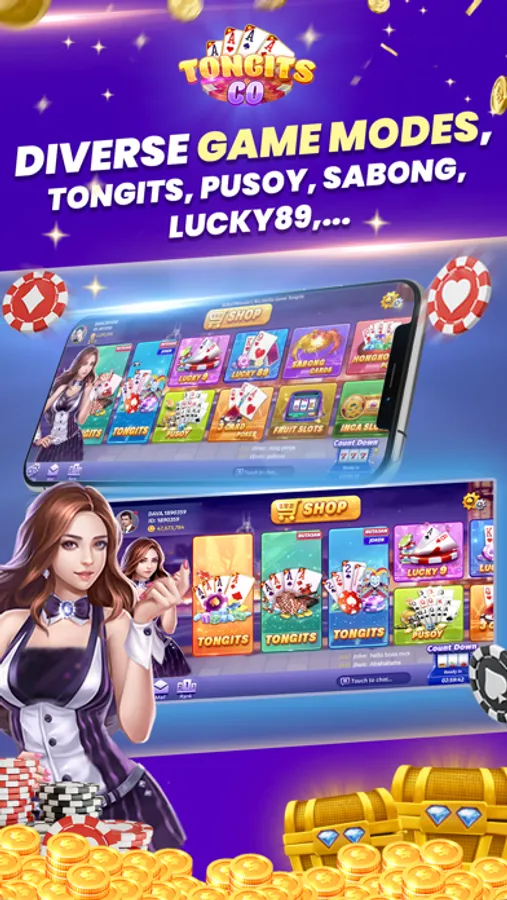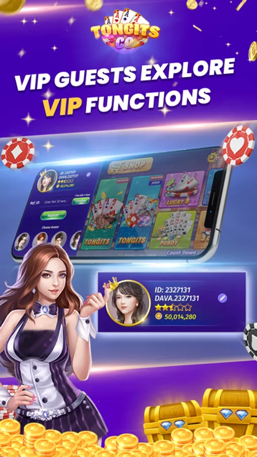 TONGITS CO, a casino app applied many popular card games Tongits, Pusoy, Sabong, Hongkongpoker, Color game... and Tongits online to play on mobile anytime and anywhere. Luxurious graphics, sound effects, and background music hit differently bringing up the chilling vibe in Tongits CO online app.