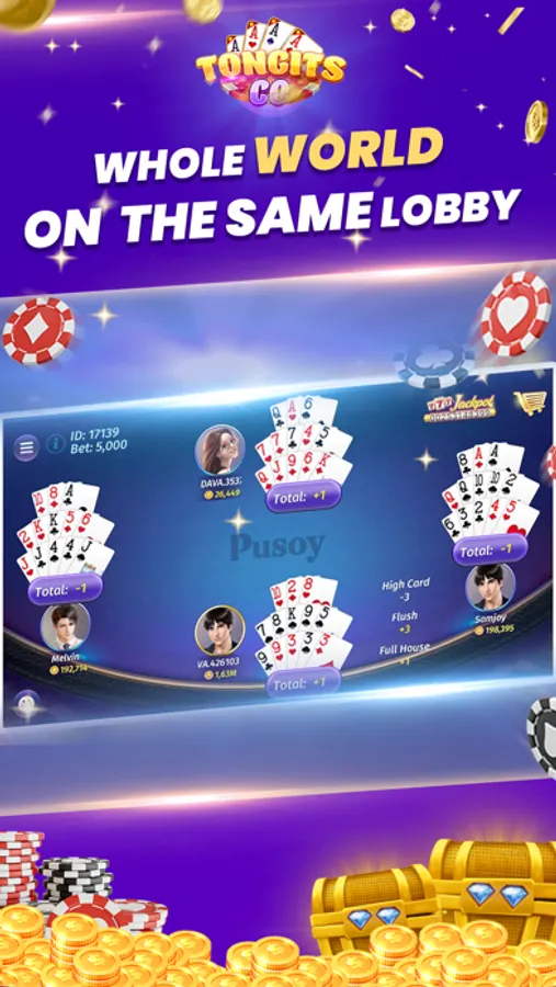 Variant Playstyles: Enjoy playing Tongits, Sabong, Pusoy, Color Game, and Poker in a different way making winning get easier.