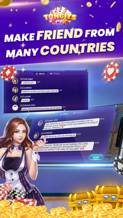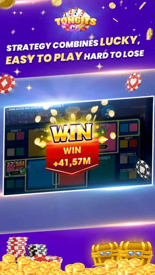 A perfect solution to let go of your stress and enjoy funny gameplay with us. But if you still got the energy to fight, it's time to start your tongits war to receive massive Chips.