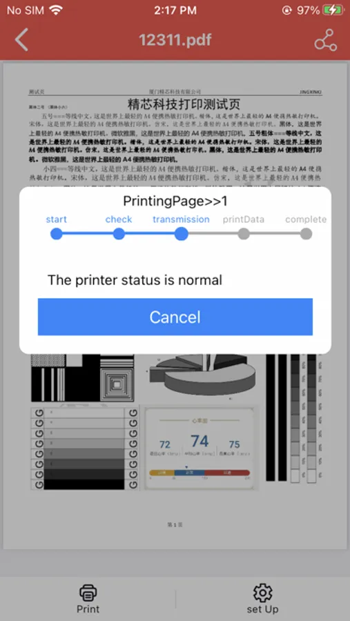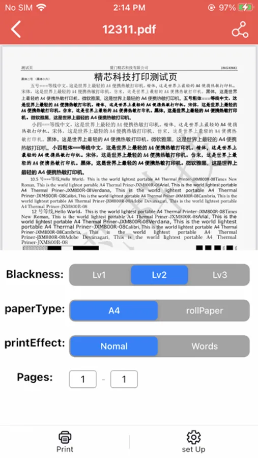Bluetooth connected thermal printer, supports jpg and pdf formats print.
