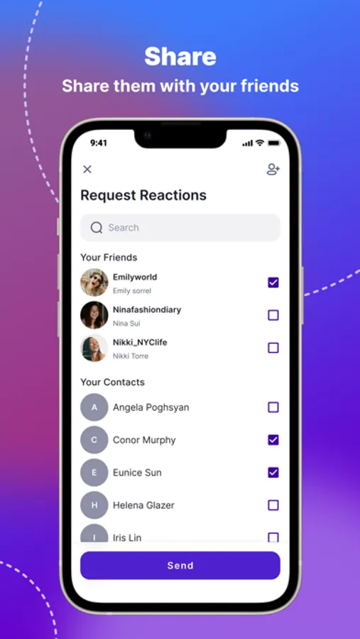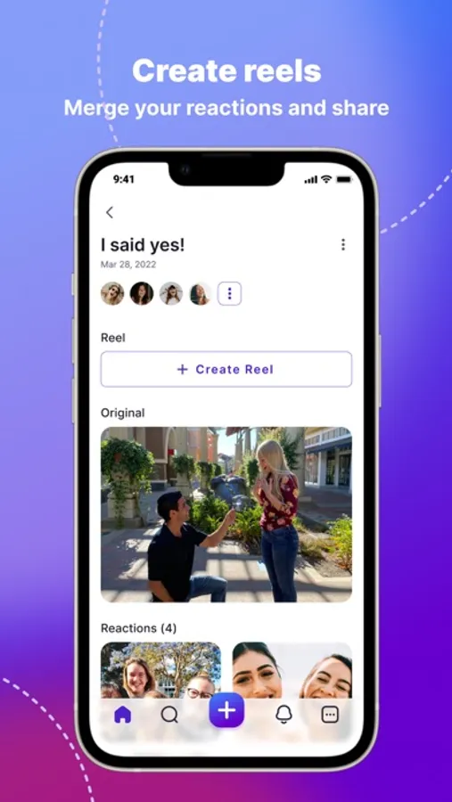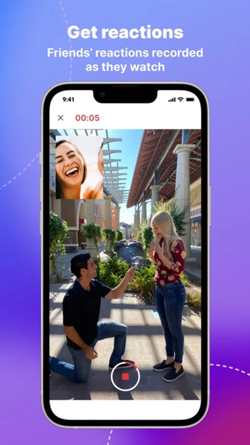Share videos with friends and save their genuine reactions as they view what you shared. Ideal for sharing exciting news such as engagements, gender reveals, college acceptance, getting hired for a new job, passing the Bar, opening a new business, etc.