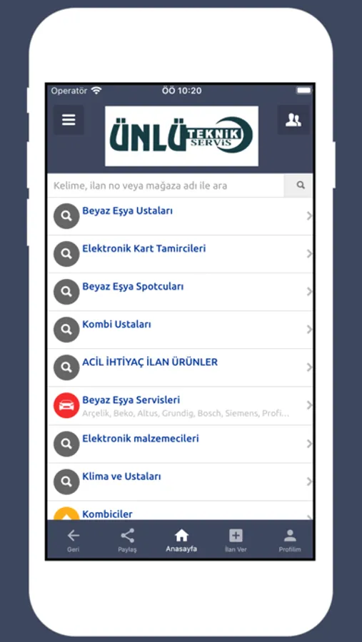 Türkiye geneli sizlere en yakın servis hizmeti alabileceğiniz ustalarımızla buluşturuyoruz gerek teknik servis gerekse spot ürünleri mağazalar dahil olmak üzere sıfır ürünlerin görsellerine ulaşabileceğiniz ve sağlayabileceğiniz ayrıca kombi, televizyon ve klima esnaflarimizla bakım hizmetleri sunuyoruz. Tüm esnaf ve kullanıcılarımıza hizmet göstermektedir