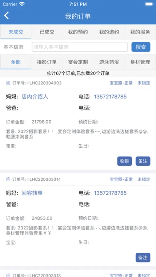 爱德熊影楼大管家是爱德熊家儿童影楼ERP管理系统的员工端APP,服务于爱德熊家庭影像中心,员工通过登录手机端APP,可以进行日常工作流程的操作,分为综合区、客资区、订单区、摄控区、选样区、数码区六大工作区。客资管理、订单管理、安排/查询订单进度、会员充值等工作全部可以在APP中完成,员工工作不再受时间及地点的限制,让工作更加灵活,客资追踪时效性更高,大大帮助影楼缩减了成本。