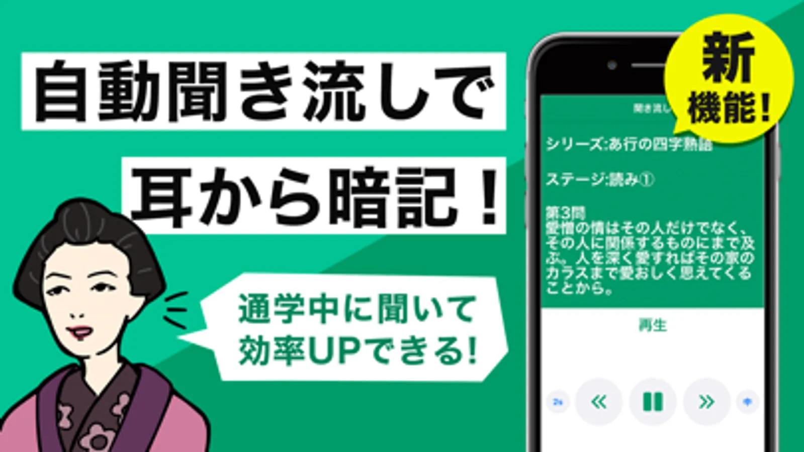 With this app, you can enjoy studying Yojijukugo as if you were playing a quiz game!