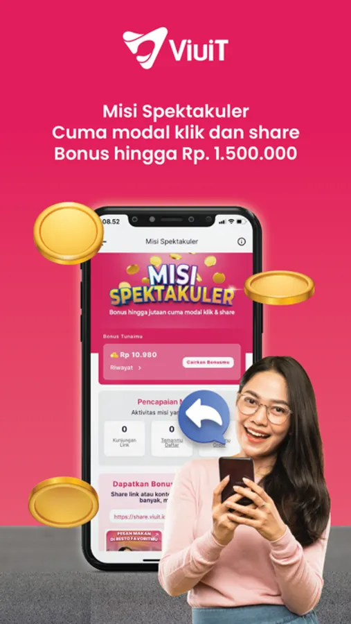 Menariknya, ViuiT memberikan kamu kesempatan untuk jadi influencer banyak CUAN, karena Bikin konten di ViuiT bisa dapet Duit!